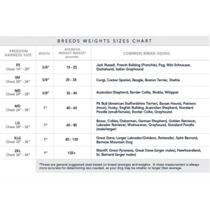 The Freedom No-Pull Harness is designed to fit any dog from 14 lbs all the way up to 250+ lbs.