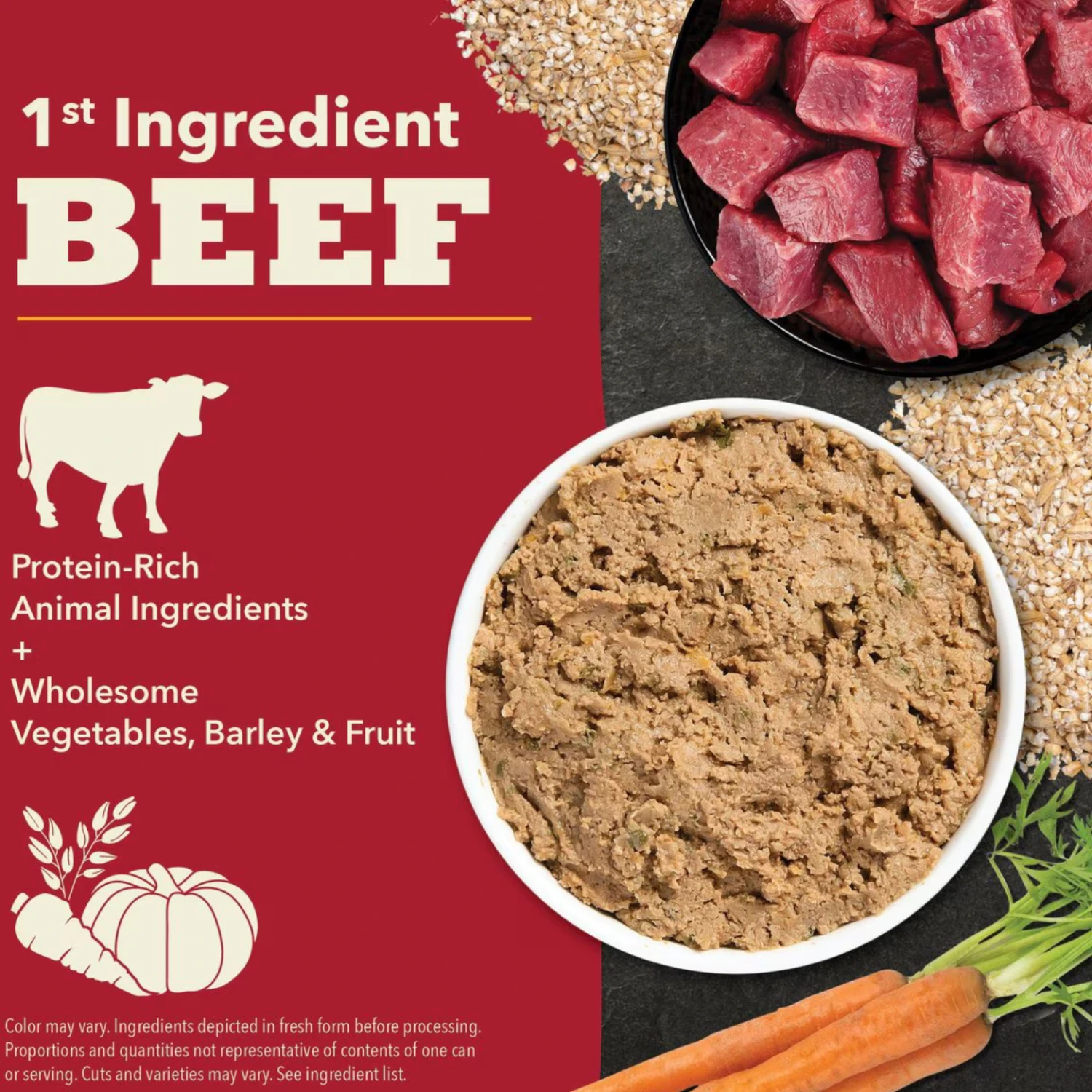 - Thoughtfully balanced with wholesome vegetables, barley and fruit.
