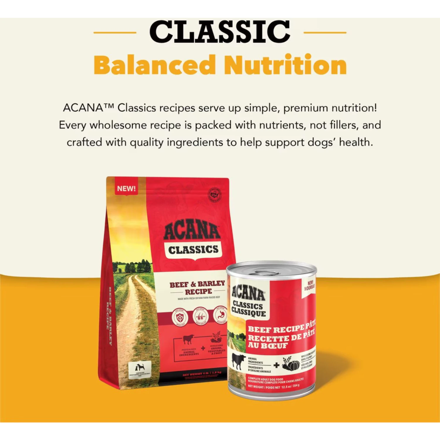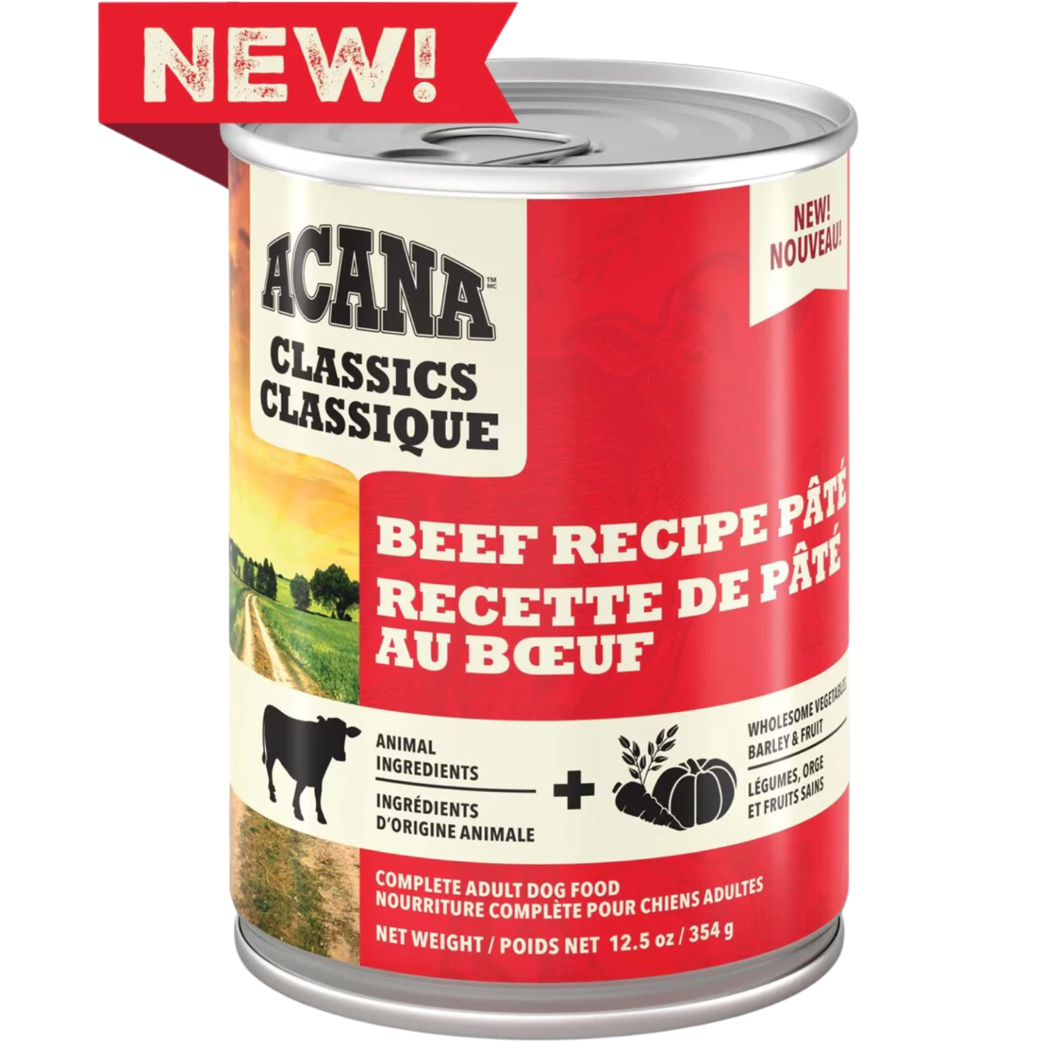 Help your dog feel so good inside, you’ll see it on the outside! Nurture your dog with nourishing and wholesome ingredients in ACANA™ Classics Beef Recipe Pâté. Crafted with protein-rich beef, this recipe is balanced with wholesome vegetables, barley and fruit, meaning it’s packed with nutrients, not fillers. With a smooth, easy-to-eat texture, this nourishing wet pâté is perfect on its own or on top of your dog’s favorite ACANA dry food. It also helps provide your dog with the hydration they need. Nourish your dog with quality nutrition in ACANA Classics wet dog food pâté!