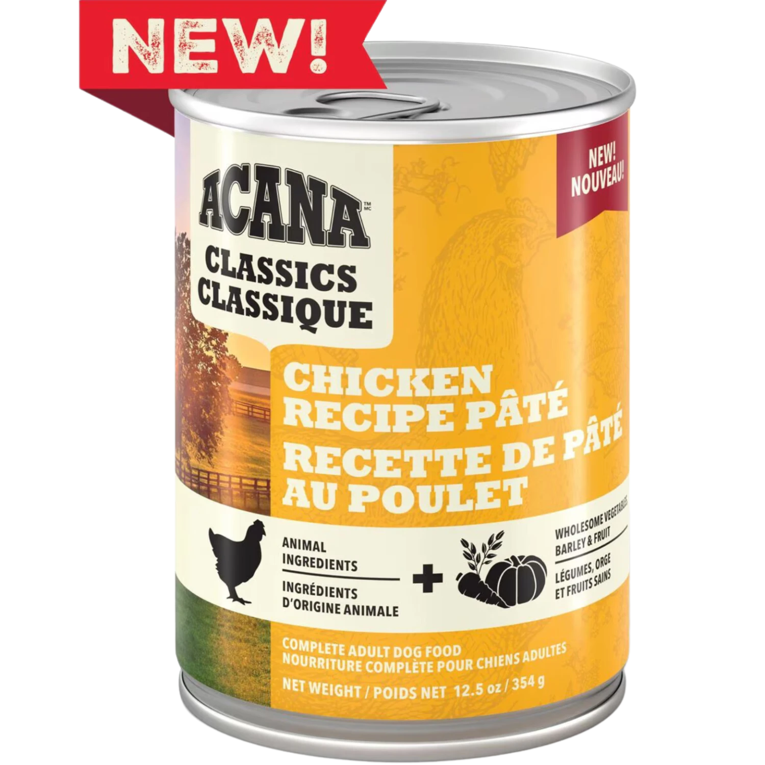Help your dog feel so good inside, you’ll see it on the outside! Nurture your dog with nourishing and wholesome ingredients in ACANA™ Classics Chicken Recipe Pâté. Crafted with protein-rich chicken, this recipe is balanced with wholesome vegetables, barley and fruit, meaning it’s packed with nutrients, not fillers. With a smooth, easy-to-eat texture, this nourishing wet pâté is perfect on its own or on top of your dog’s favorite ACANA dry food. It also helps provide your dog with the hydration they need. Nourish your dog with quality nutrition in ACANA Classics wet dog food pâté!