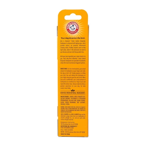 Help clean and deodorize your dog’s teeth and gums with the power of baking soda! Arm & Hammer’s Dental Fresh Breath Enzymatic Dog Toothpaste is designed to kill bacteria as you brush your pup’s teeth, promoting a cleaner, healthier mouth. Using the power of baking soda, the toothpaste also helps whiten your BFF’s teeth while reducing odor for fur-esh, clean breath that’s sure to make you smile. And to make your dog’s dental hygiene routine a more enjoyable experience, this toothpaste has a delicious vanilla-ginger flavor your canine companion will love!
