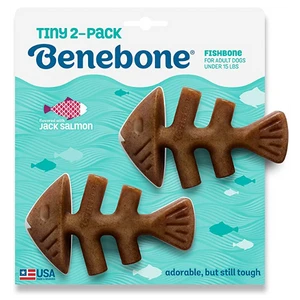 Help satisfy your small sidekick’s chewing instincts with Benebone’s Tiny Fishbone Flavor Dog Chew Toy! Made in the USA with a wag-worthy Jack Salmon flavor, these chew toys are specially designed for adult dogs who weigh under 15 pounds. Each purchase comes with two fishbone-shaped chews. Both toys are designed with your paw-tner in mind, providing him with plenty of places to grip with his paws, so he can fully enjoy his new Benebones.