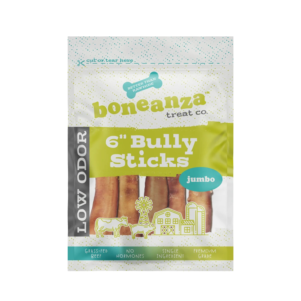 Great for anxious or active dogs, as chewing calms dogs down and relieves stress. Most big dogs like Labs, shepherds, pit bulls, etc will chomp down a normal skinny bully stick like it’s nothing – this 6″ Jumbo bully stick is a better option when it comes to durability. These bully sticks were made with NO chemicals or preservatives which makes this a safe treat for your dogs to chew on!