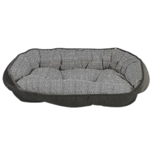 Open front design makes it easy for older dogs to step into this new design. The oval ring creates the feeling of security pets love and dogs will love resting their heads on the supersoft bolster. Zippered cover for washing; tufted bottom ensures fibre doesn’t clump or shift. Reversible design with attractive contrast piping.