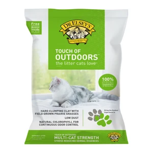 Do you have a cat that wants to go outside or do you want to enrich your cat’s environment? You may have observed stress behaviors like pacing, scratching furniture or rugs, intercat aggression, increased vocalization, excessive grooming or urine marking. Dr. Elsey’s Precious Cat Touch of Outdoors with natural chemical free prairie grasses grown in their fields can help your cat feel less anxious, bored and depressed which translates into a happier cat environment. Touch of Outdoors has natural chlorophyll for odor control and no airborne dust. Bring the outdoor experience in with Touch of Outdoors Litter! Each box has a free Litter Box Solutions Booklet.