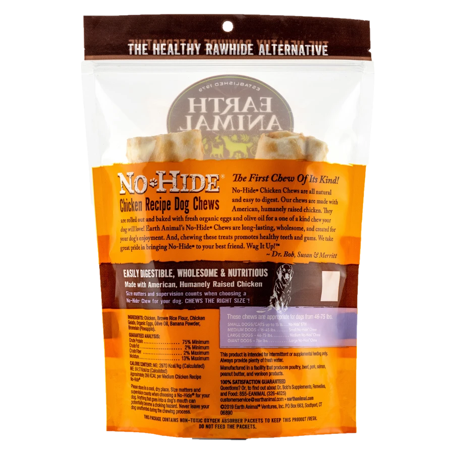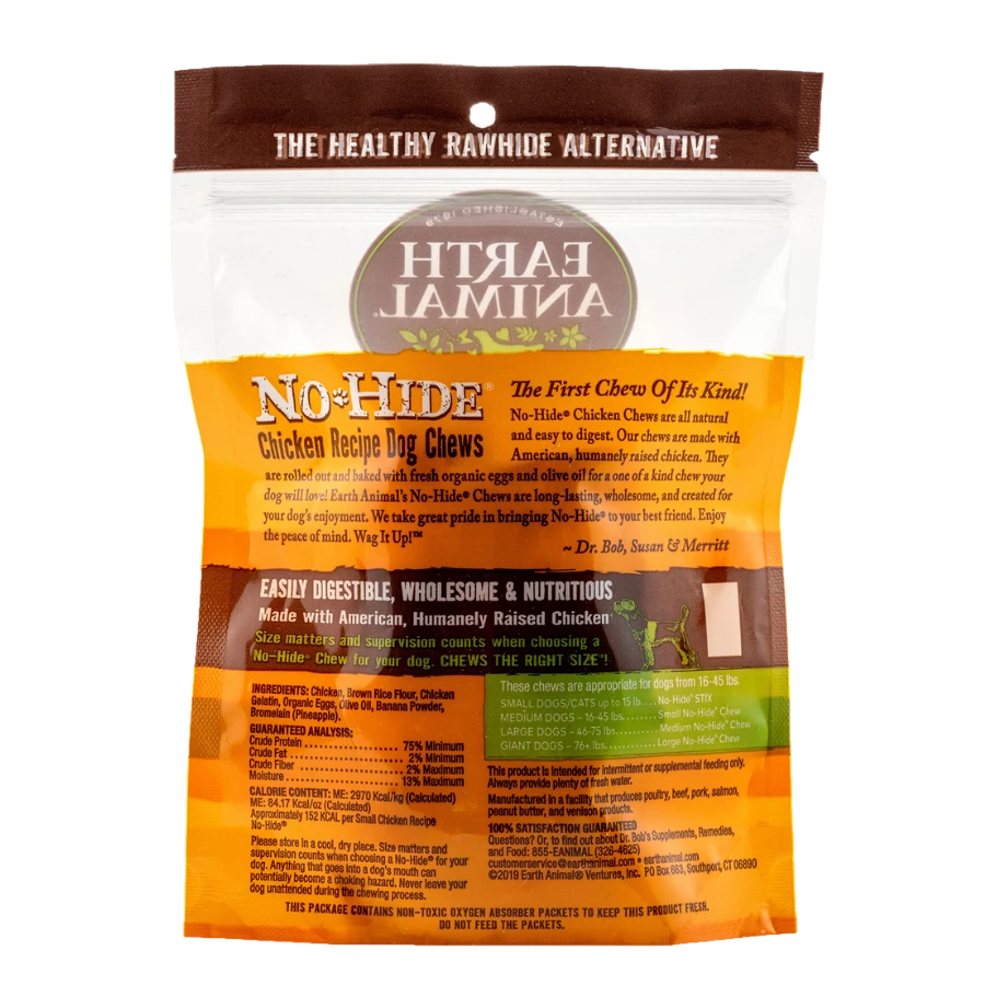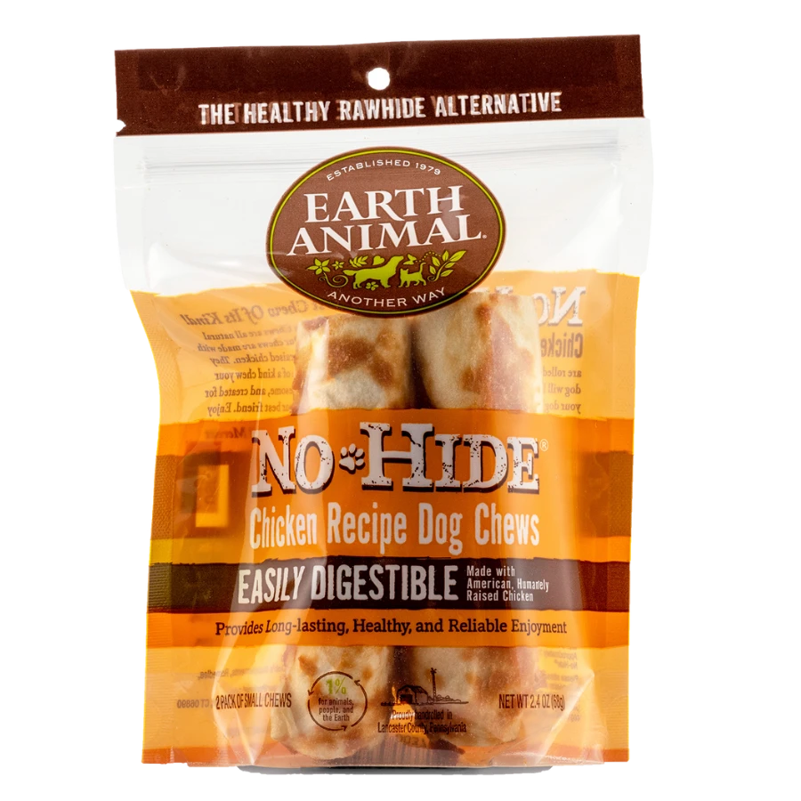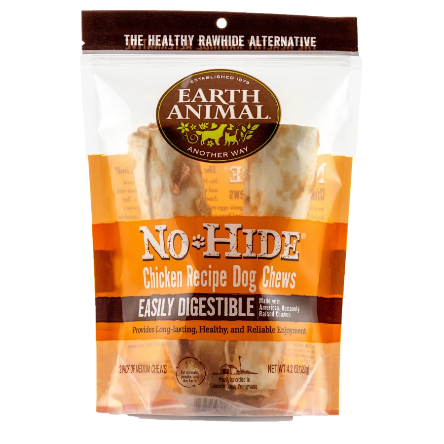 Keep your furry friend blissfully busy with Earth Animal No-Hide Cage-Free Chicken Small Natural Rawhide Alternative Dog Chews! Made with real, simple ingredients, these rawhide-free chews are nutritious, mind-blowingly tasty and designed to last longer than regular treats. Each chew is crafted in the USA using humanely raised chicken. They contain no rawhide, bleach, synthetics or artificial preservatives. For long-lasting, nutritious fun, try Earth Animal No-Hide Chews!