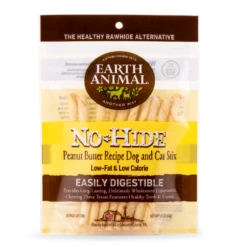 Earth Animal No-Hide Peanut Butter Stix Natural Rawhide Alternative Dog & Cat Chews is a gnaw-some treat for dogs and cats alike! Made with real, simple ingredients, these rawhide-free chews are nutritious, mind-blowingly tasty and designed to last longer than regular treats. Each chew is crafted in the USA using low-fat peanut butter. They contain no rawhide, bleach, synthetics or artificial preservatives. For long-lasting, nutritious fun, try Earth Animal No-Hide Chews!