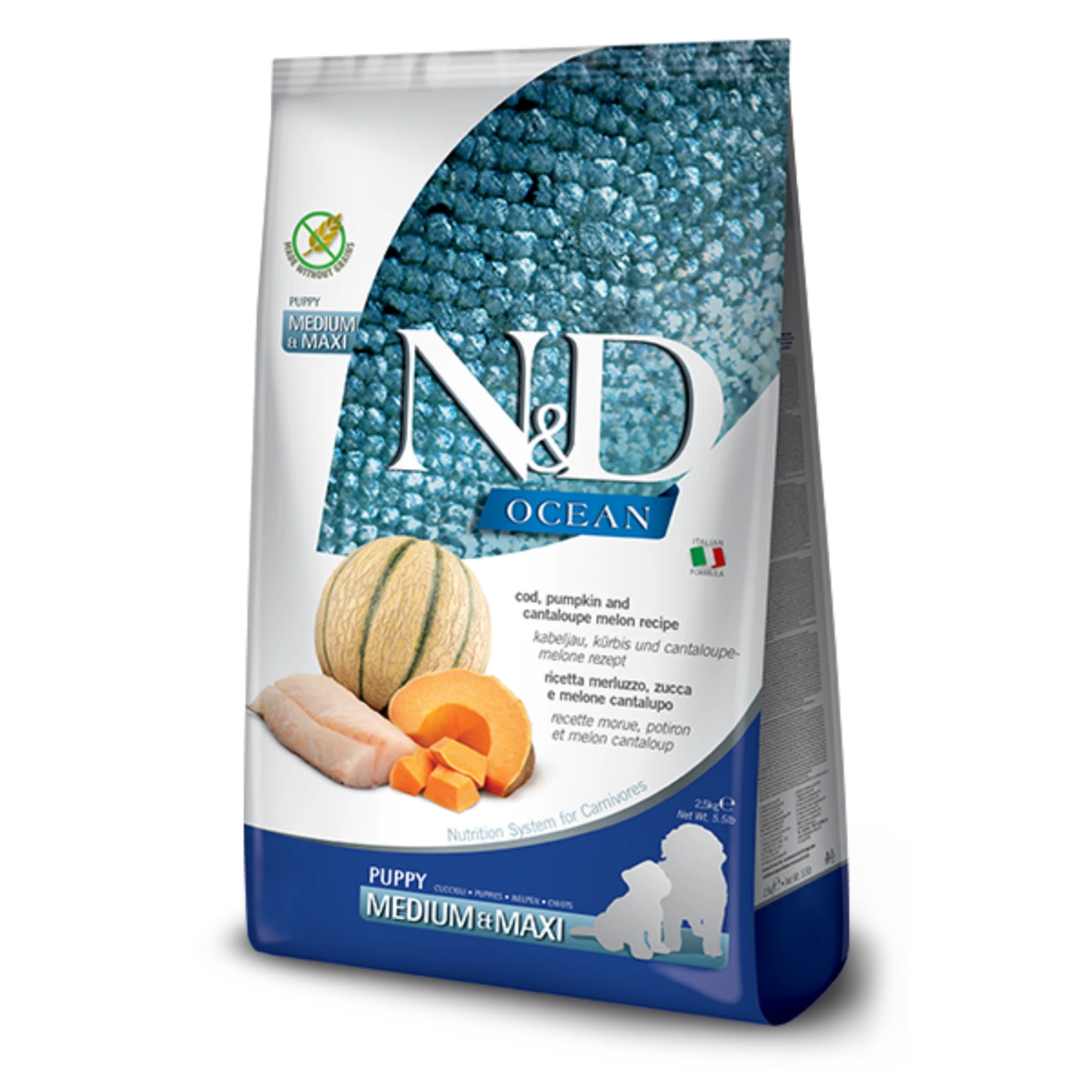 Farmina N&D Ocean Cod, Pumpkin, & Antelope Medium & Maxi Puppy Dry Dog Food