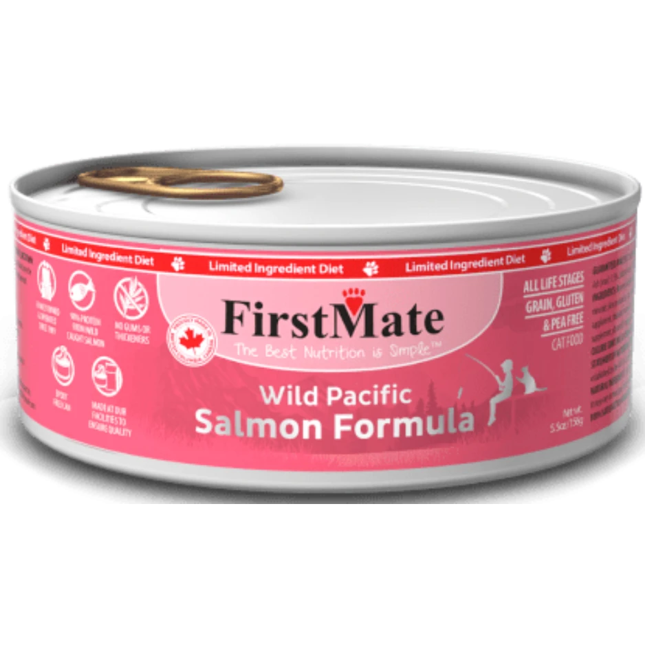 FirstMate Salmon Formula Limited Ingredient Grain-Free Canned Cat Food uses wild-caught, food-grade salmon sourced from sustainable fisheries. This grain-free, limited ingredient formula’s simple ingredient panel makes it ideal for those with food sensitivities or allergies. This recipe makes a great treat, topper or complete everyday meal. Keep things simple, delicious and nutritious with high-quality ingredients you can feed to cats of all life stages.
