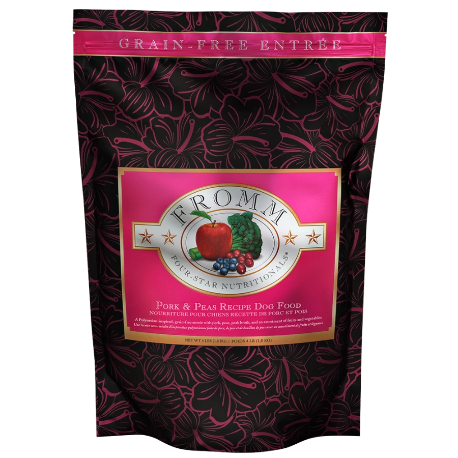 A Polynesian-inspired grain-free entrée with pork, peas, pork broth, and an assortment of fruits and vegetables.