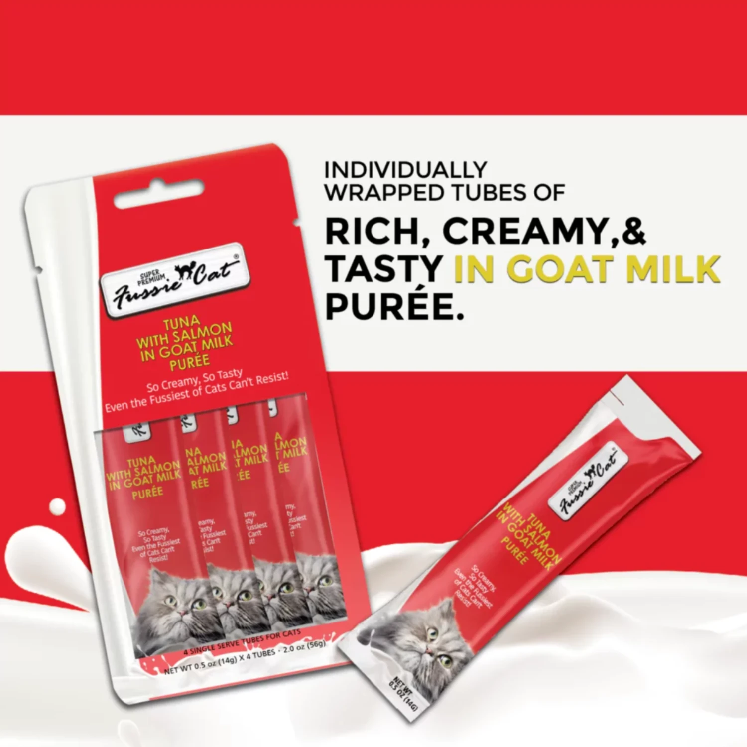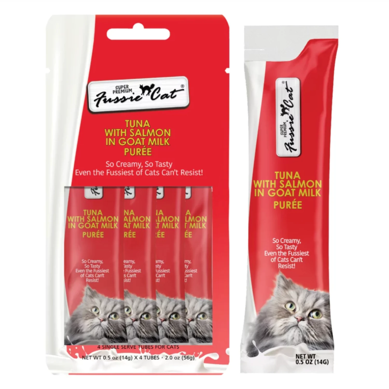 Fussie Cat Goat Milk Puree Cat Treats Tuna With Salmon, 2 Oz