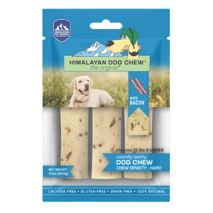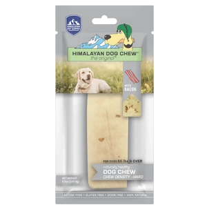 Himalayan Dog Chew Bacon is the original®, long-lasting, hard cheese chew that your dogs have come to know and love, with more flavor! Himalayan Dog Chew Bacon-flavored hard cheese chews are made using our traditional Himalayan Cheese recipe with added bits of bacon. Our chews are naturally smoked and have no artificial flavors or binding ingredients.