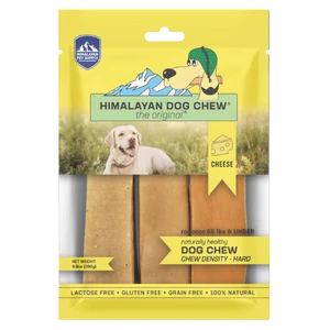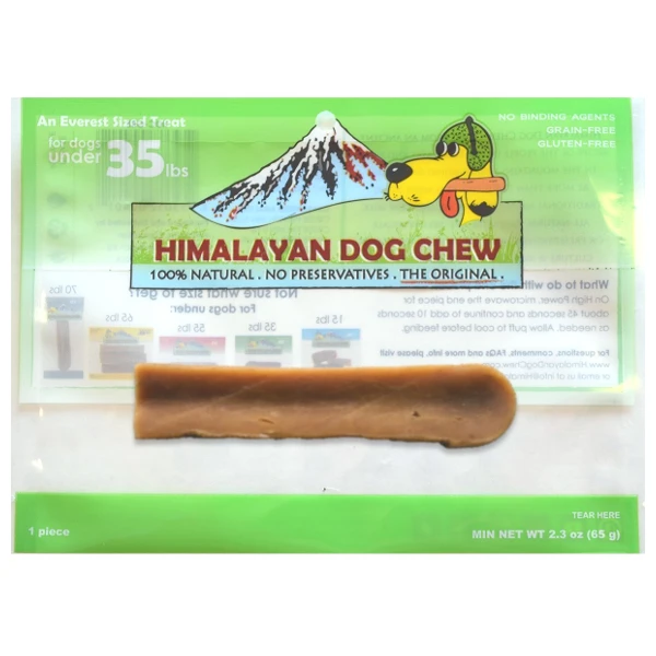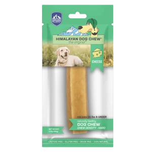 Himalayan Dog Chews were born from an ancient recipe for a hard cheese snack chewed by the people of the Himalayas. In the mountains surrounding Mt. Everest at more than 15,000 feet, it is made using traditional methods with yak and/or cow milk, and all natural products with no preservatives or binding agents. They’re also gluten free! Depending on the size and eating habits of the dog, this can be a very long lasting dog chew. Dogs must work the end of the treat for hours, softening it with their mouths before small parts of it can be slowly chewed off. When you give this treat to your dog, you know that you are providing them with high-quality eating entertainment.