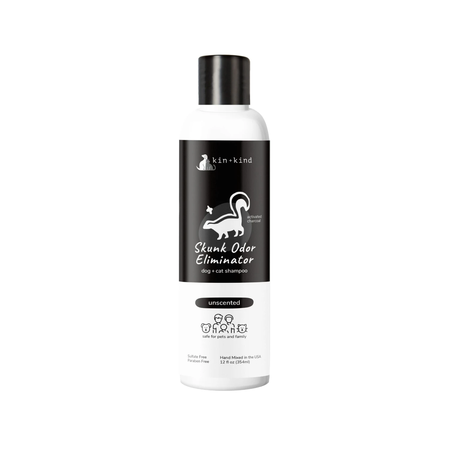 Got Skunked? Remove any odors, guaranteed. Shampoo your pet’s skin and coat with kin+kind’s Skunk Odor Eliminator to get rid of even the toughest odors.