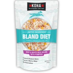 Whether your dog suffers from chronic digestive issues or is experiencing a digestive flare-up, KOHA Bland Diet can be fed to help get their tummy back on track! KOHA Bland Diet for dogs is ideal for dogs with upset stomach, loose stool, or diarrhea. This gently formulated limited ingredient dog food recipe has just one protein source for easy digestion. It also includes white rice and pumpkin to support healthy stools and regularity. When your vet suggests feeding your dog a bland diet of beef and white rice, there’s no need to spend time cooking. KOHA dog Bland Diet is convenient and ready-to-serve! The delicious taste of real beef combined with highly digestible white rice will get your dog’s tail wagging. KOHA Bland Diet sensitive stomach dog food has only the most high-quality ingredients, and is free from junky fillers like peas, potatoes, corn, soy or artificial preservatives.