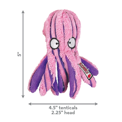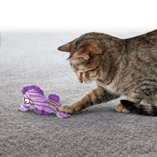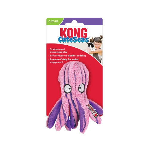 The blend of textures on the KONG CuteSeas Cat Toy tempts cats to play. The soft, plush corduroy body invites snuggling and cuddling while the fun crinkle sound encourages play. A generous portion of KONG Premium North American Catnip helps entice play, keeping your cat engaged for hours and offering an added reward.