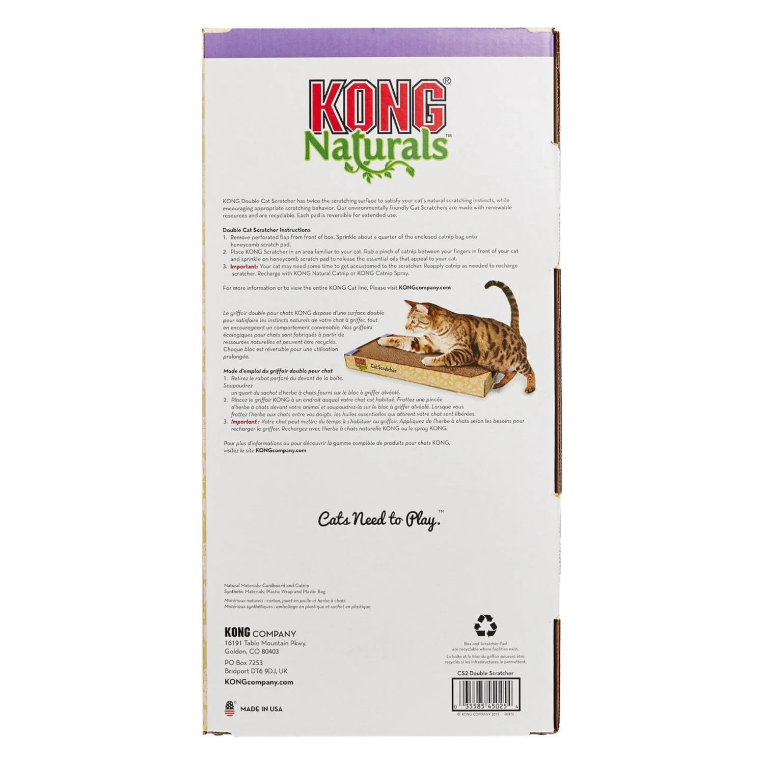 - Place KONG Scratcher in an area familiar to your cat. Rub a pinch of catnip between your fingers in front of your cat and sprinkle on the honeycomb scratch pad to release the essential oils that appeal to your cat.
