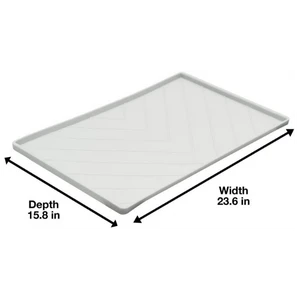 - The 0.5″ raised edge will help contain the spills and the two sides with embedded steel rods make it easy to pick up and transfer any mess from the floor.