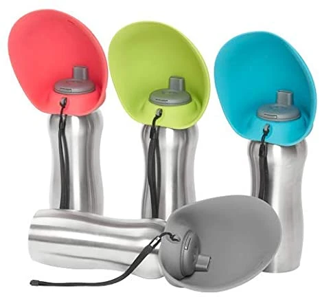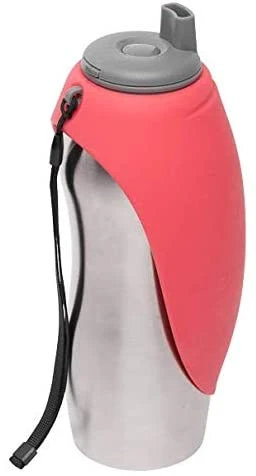 Messy Mutts’ travel water bottle and bowl is easy to use and ideal for walks, hikes and road trips. Just fold up the silicone bowl and press the quick release button to quench your messy mutt’s thirst! Unused water drains back into the stainless steel bottle after use and the bowl folds back over the bottle for easy portability.