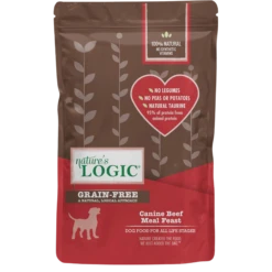 Nature’s Logic Beef Meal Feast is a 100% natural, highly palatable and nutrient rich dry dog food featuring high-quality, high-protein beef meal from USA-raised cattle as the first ingredient. The diet features concentrates of select fruits and vegetables and the kibble is specially coated with digestive enzymes and plasma protein containing high levels of natural vitamins, minerals and albumin and globulin proteins. Plus, it’s made without the use of potatoes, peas, lentils, wheat, corn, rice, soy, potato or chemically synthesized vitamins, minerals, trace nutrients, carrageenan, guar gum or xanthan gum.
