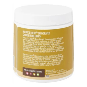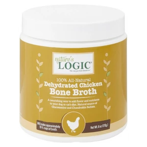 Add a splash of savory flavor to your precious pet’s diet with Nature’s Logic Dehydrated Chicken Bone Broth for Dogs & Cats. Made from 100% all-natural, dehydrated chicken bone broth, this tasty liquid drink is the purr-fect way to add enticing flavor and hydrating moisture to your furry friend’s next meal. And because bone broth naturally contains trace minerals, amino acids, glucosamine and chondroitin sulfate, it also helps boost her immune system, maintain or improve joint health, and enhance nutrient absorption for overall well-being. Plus, since this tasty broth is made for both cats and dogs, it is especially perfect for multi-pet households with canine companions and feline friends!