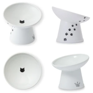 We have created our first tilted bowl so your cat can dine in even greater comfort! Unlike traditional food bowls, the tilted lip of the bowl helps your cat eat with less neck fatigue, and the anti-spill lip combined with the bowl shape keeps food centered, so your cat can easily pick up all pieces with less stress. The bowl’s wide lip also reduces whisker fatigue and makes it easier for flat-faced cats to eat every last bite.