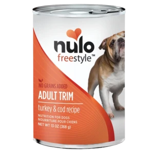 Help your furry friend get back in tip-top shape with Nulo Freestyle Turkey and Cod Recipe Canned Adult Trim Dog Food! This tasty low-glycemic wet dog food is designed to deliver the weight management support your canine companion needs, all while delivering delicious flavor! This grain-free recipe provides your pal with the low-fat and lean-protein diet she needs with real turkey, turkey broth, salmon broth, turkey liver and real cod listed as the top five ingredients! Plus, this low-glycemic dog food is also made without corn, wheat or soy, making it perfect for furry friends with sensitivities. Use this tasty recipe as a primary diet for your precious pup or as a tasty topper with her favorite kibble!