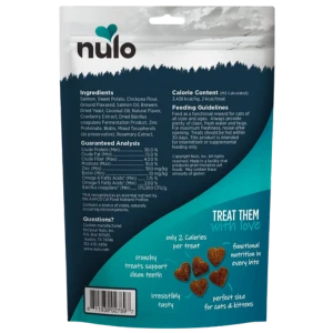 Not only are Nulo Skin & Coat Salmon Recipe Grain-Free Crunchy Cat Treats su-purr tasty, they’re good for your furbaby, too. Salmon is the first ingredient, and it’s paired with coconut oil to provide tons of omega fatty acids to promote a sleek and shiny coat. Supplemental zinc and biotin support skin health, while prebiotics and probiotics promote a healthy, happy tummy. These crunchy treats promote clean teeth, too. Free of corn, wheat, gluten, soy and artificial preservatives, colors or flavoring, these treats are a delicious and nutritious choice for cats and kittens of all ages.