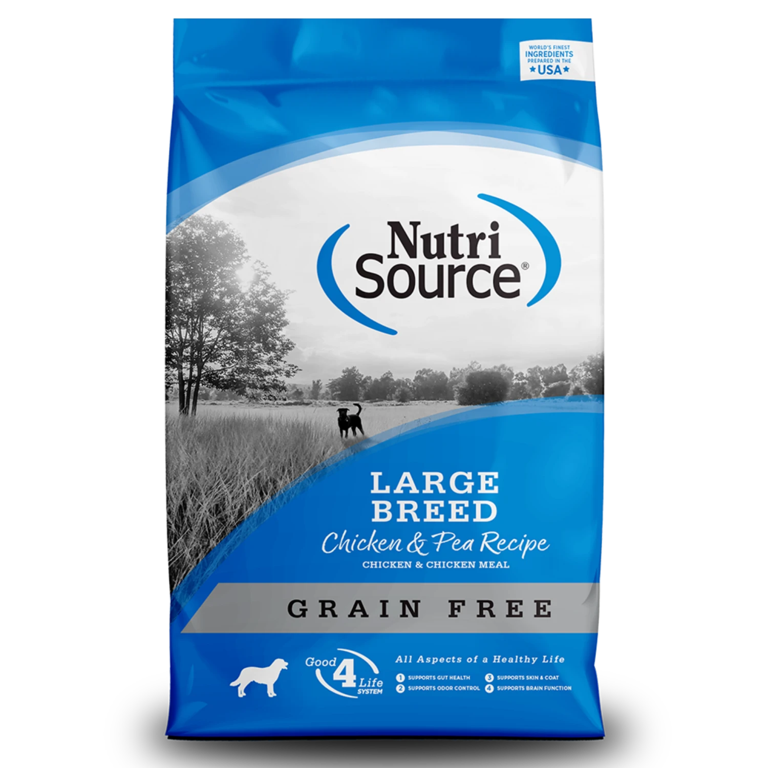 NutriSource® Large Breed Chicken & Pea Formula Grain Free is made with delicious chicken as the #1 ingredient that features excellent palatability, digestibility, and taste dogs love. The large breed kibble size satisfies large and giant breeds appetite for chewing and taste. NutriSource® Large Breed Chicken & Pea Formula Grain Free features the NutriSource® exclusive “Good 4 Life” system and is made with the finest quality ingredients available.
