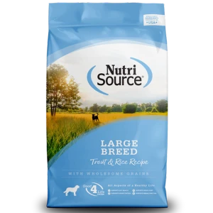 - As a member of our grain inclusive series of dog foods, NutriSource ® Large Breed Trout & Rice Recipe is formulated to meet AAFCO guidelines for all life stages.