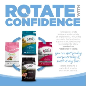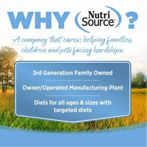 - NutriSource® grain inclusive formulas deliver compact nutrition and include prebiotics and probiotics to help support a healthy gut.