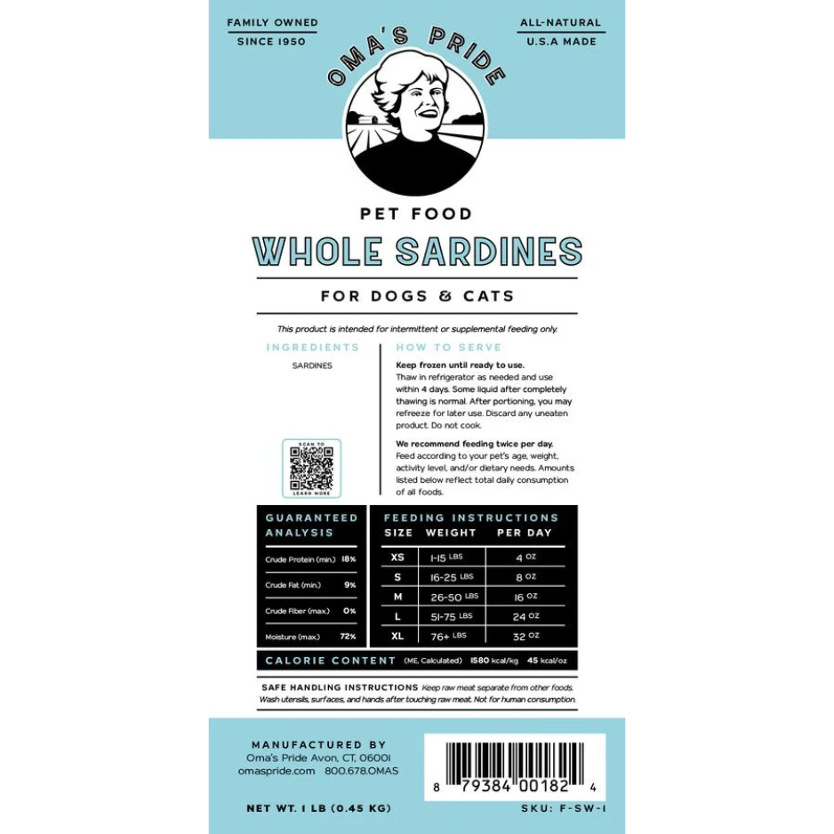 Oma’s Pride Whole Sardine Raw Frozen Dog & Cat Food