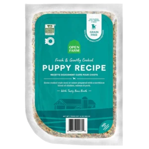 This slow-cooked recipe is packed with nutrients to support healthy growth and prevent allergies, thanks to a mix of humanely raised chicken and pork, wild-caught, Ocean Wise® approved salmon, vitamin-rich beef liver, and non-GMO veggies and superfoods, plus chicken bone broth to support healthy joint development and prebiotic fiber to healthy digestion.