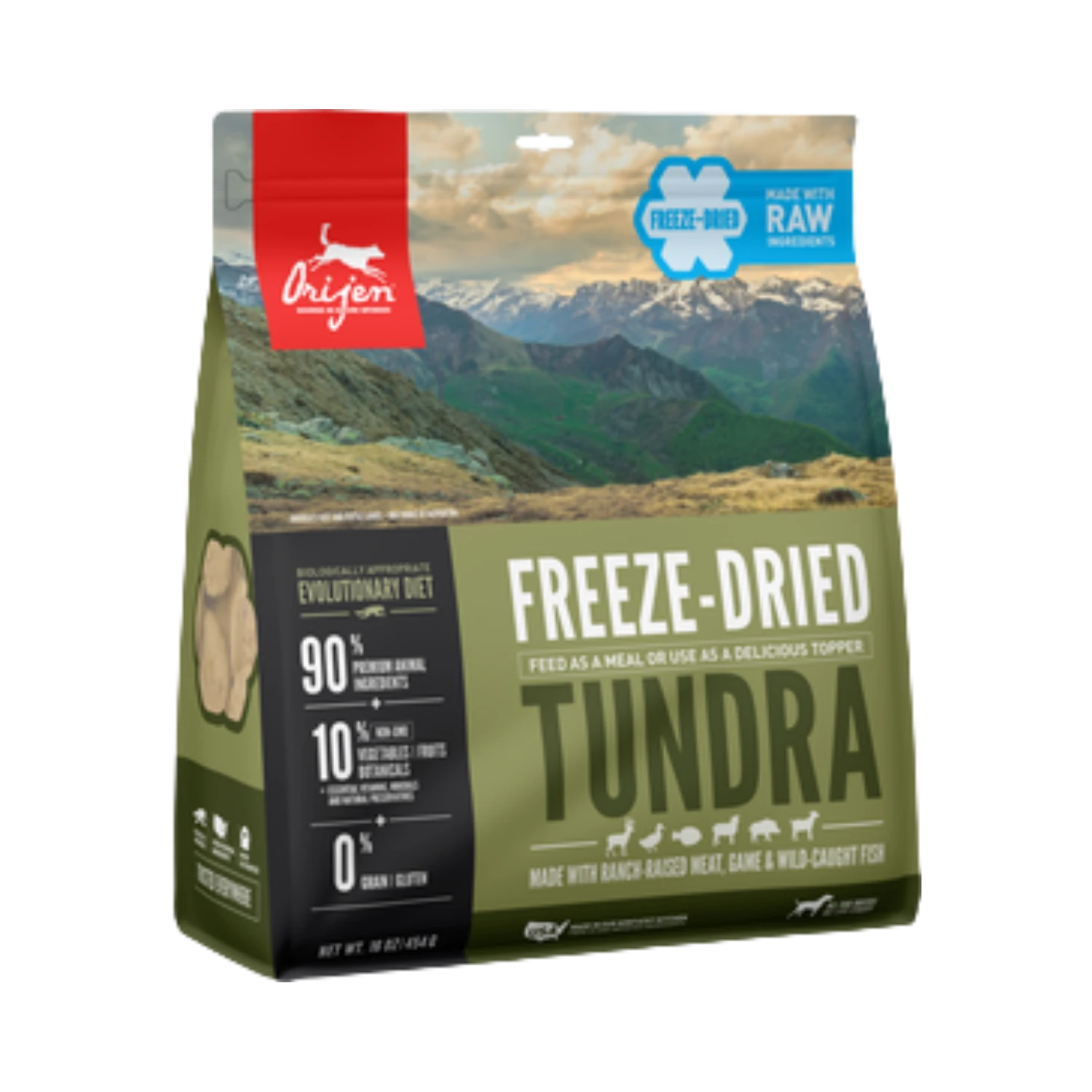 ORIJEN®Freeze-Dried Medallions provide your dog with a rich, concentrated source of animal protein and nutrients in a convenient dry form. ORIJEN Tundra Freeze-Dried Medallions are made with a unique blend of venison, duck, wild-caught flounder, lamb, wild boar and goat to nourish your dog completely. Freeze-dried to lock in the raw animal ingredients, Freeze-Dried Medallions mimic what your dog’s ancestors consumed in the wild. Nourish your dog with Biologically Appropriate nutrition by feeding them Freeze-Dried Medallions alone or on top of their favorite meal.