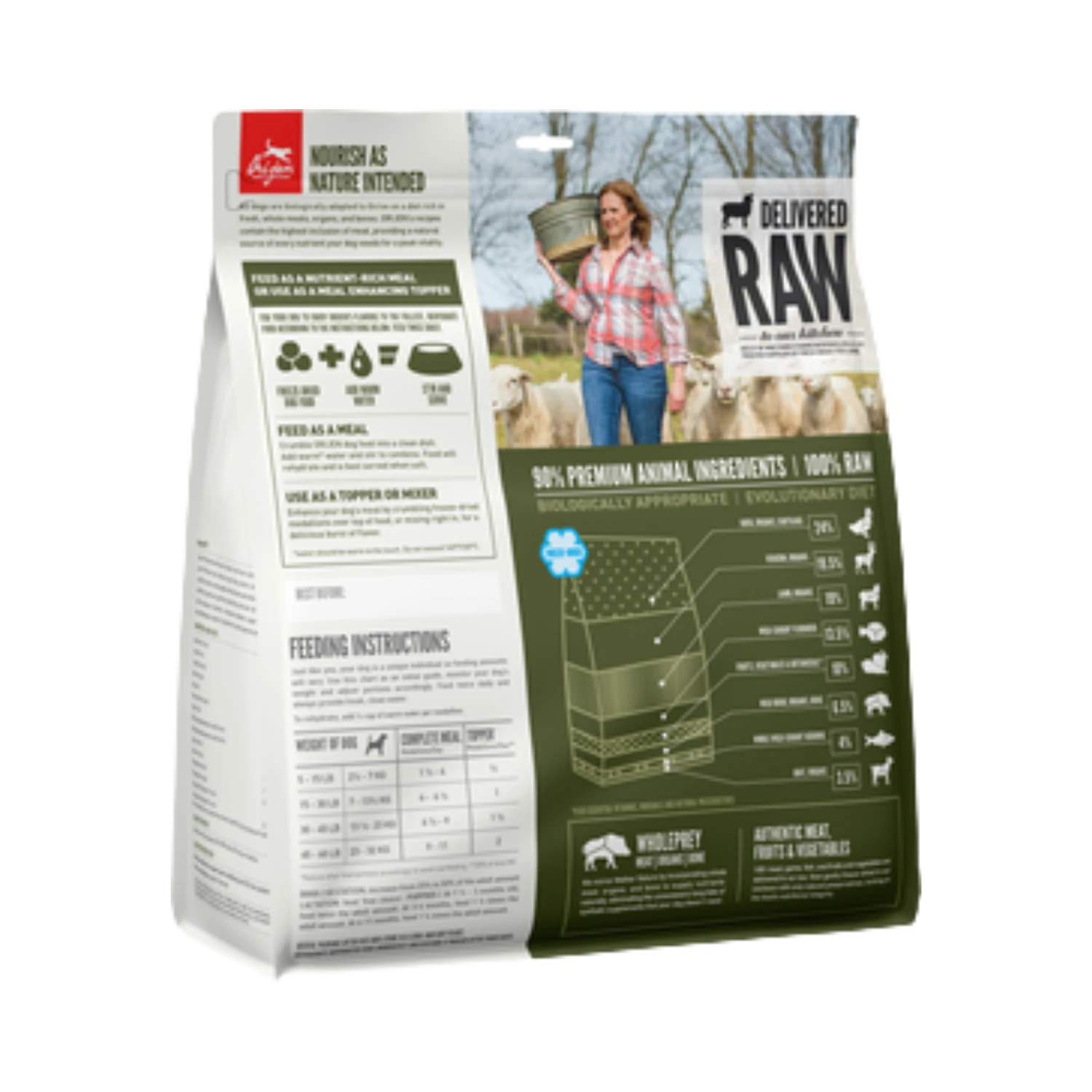 - Feed as a nutrient-rich meal by adding warm water and stirring, or add it to your dog’s favorite ORIJEN food by crumbling medallions and adding them as a delicious topper.