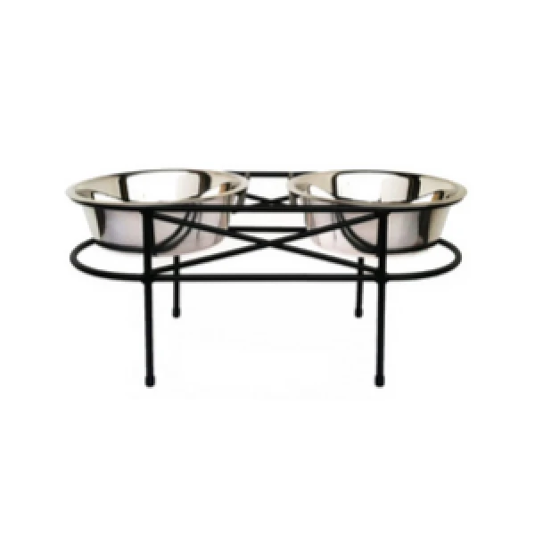 The Mesh Dog Diner is a simple, elegant raised dog feeder. Constructed of wrought iron wire, this elevated dog bowl set features a classic cross design across its front and back. Perfect for any setting – modern, contemporary, or traditional. Available in two great finishes and three sizes to suit a wide variety of dog breeds.