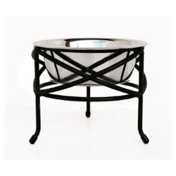 The Mesh Single diner is a simple classic. This elegant raised single diner features a minimalist wrought iron cross pattern with a three-legged base setup that assures stability on any surface. Available in three heights to fit a variety of breeds – terriers to Great Danes, and all breeds in between. Also available to fit PetWare Pottery large ceramic bowls. See Diners for PetWare.
