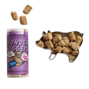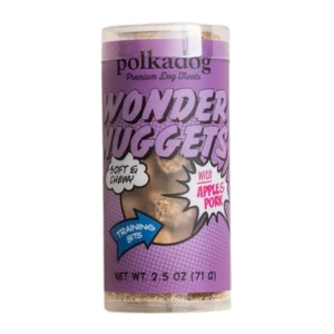 Succulent buttery pork chop, we will never let you down. We will not ask what you do for us. What can we do for you? We will not forget you crave apples both tart and sweet, so juicy, so bright. O Pork! O Apple! Pork & Apple Wonder Nugget you shall be! Pork, at US farms we will find you, and in our Boston Fish Pier kitchen we will craft you, fulfilling our duty as makers of the finest pet treats in all the lands of the earth. O soft gentle bites: the Dog howls with gratitude!