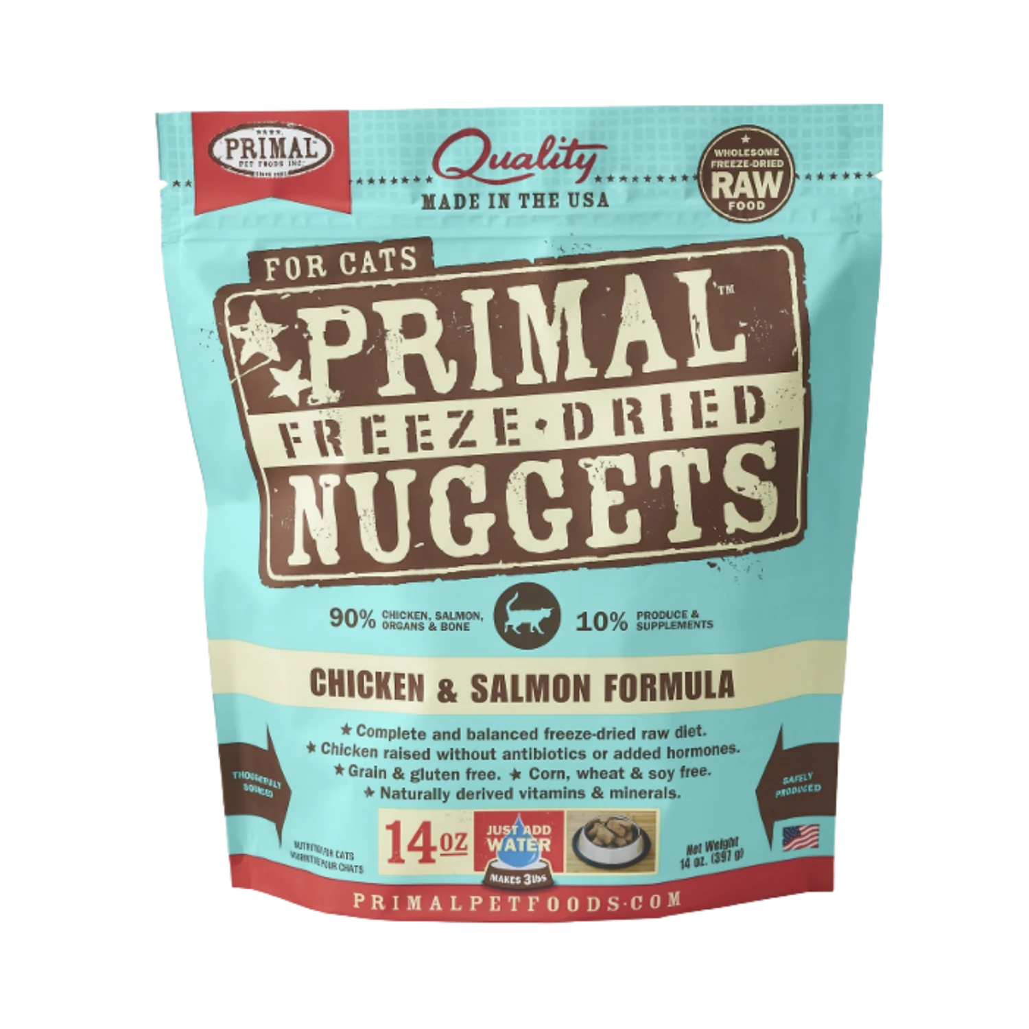 Shelf-stable and ready to serve – just portion, shred, and rehydrate with water, Bone Broth, or Raw Goat Milk. Made with high-quality protein and Certified Organic produce, formulated especially for your feline.