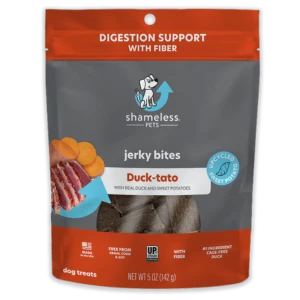 You may want to take shelter when these jerky bites spin up your furry tornado. After the storm settles you’ll be relieved to know these bites also support digestive health. We use cage free duck so you don’t have to ask “What the duck?” when it comes to nutrition.