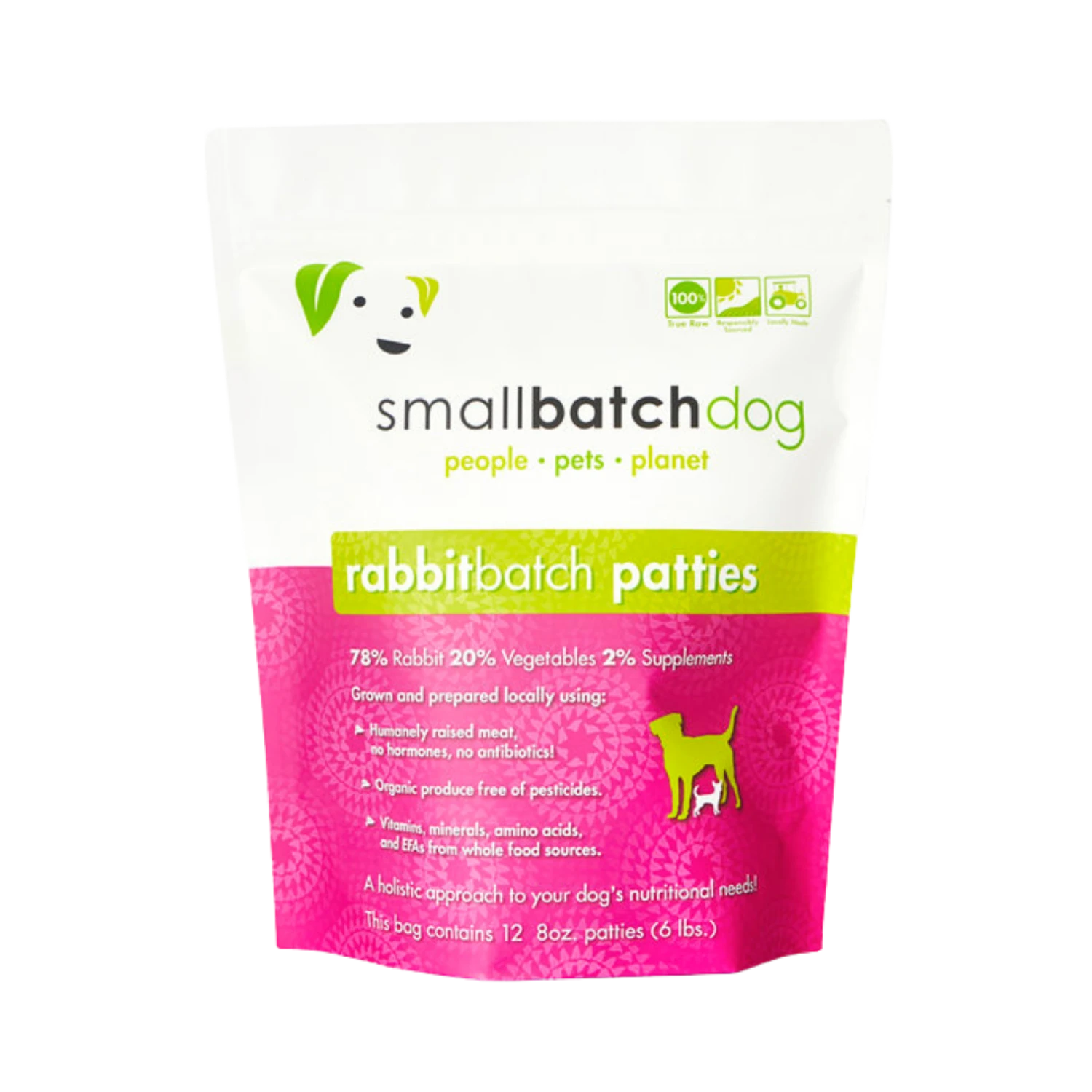 Small Batch Rabbit Frozen Raw Dog Food Patties, 6 Lbs