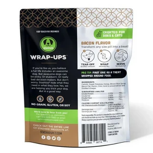 - Yummy bacon-flavored Wrap-Ups can be stretched to coat any sized pill, tablet or capsule.