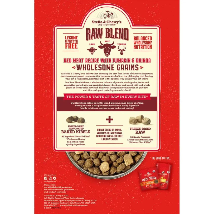 Stella & Chewy’s Wholesome Grain Red Meat Recipe Raw Blend Baked Kibble Dog Food