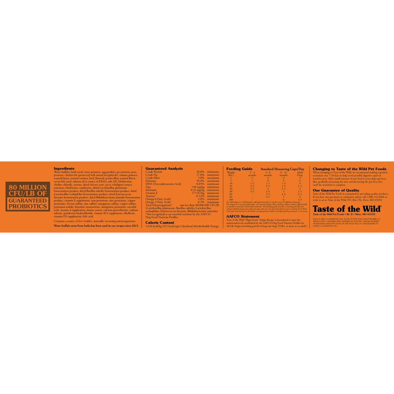 Nourish your puppy pal with the balanced diet nature intended with Taste of the Wild High Prairie Puppy Formula Grain-Free Dry Dog Food! Formulated with novel proteins including buffalo and bison, this grain-free recipe includes peas and sweet potatoes that deliver the highly-digestible energy your growing puppy needs, along with natural antioxidant support from real fruits and vegetables and dried chicory root for prebiotic support and healthy digestion. Essential minerals are chelated with amino acids to optimize their absorption and ensure maximum benefit, for complete and balanced nutrition with a taste of the wild your furry friend constantly craves!