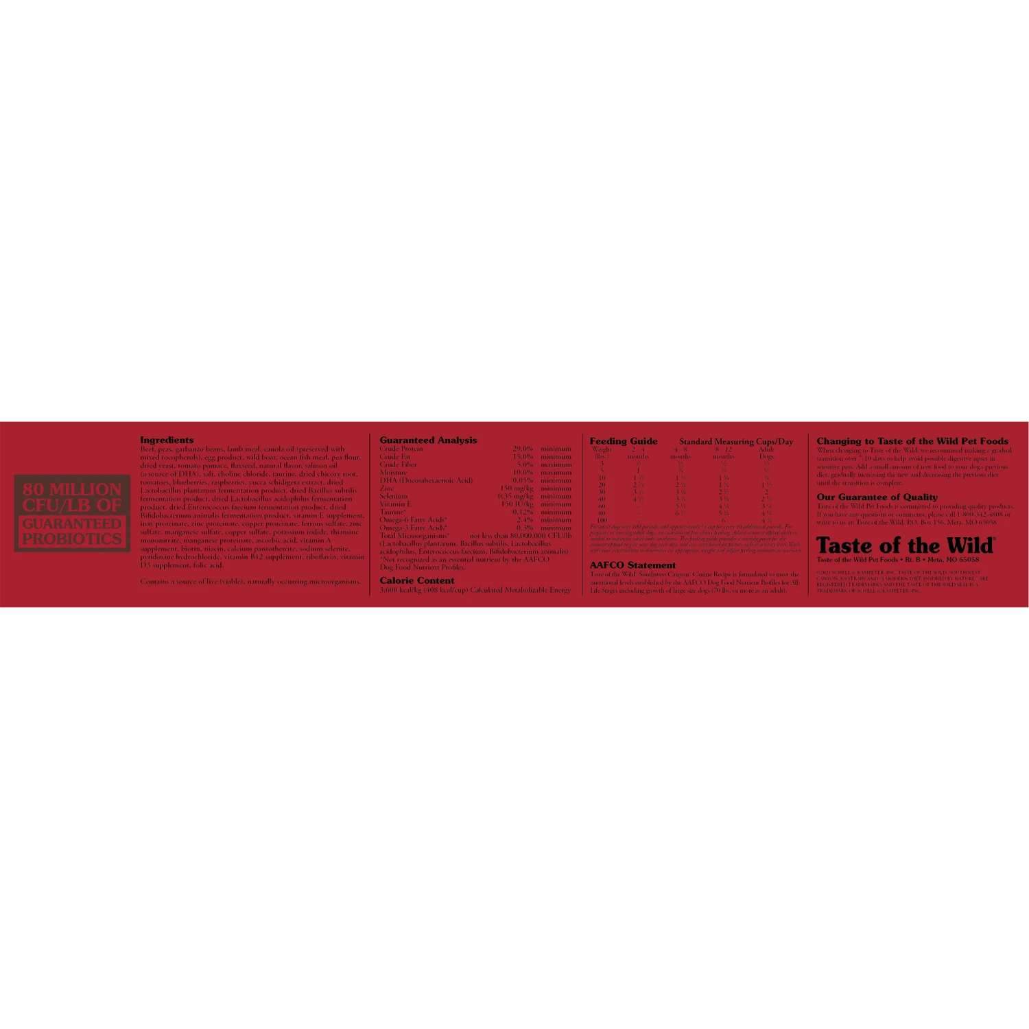 Nourish your canine companion with the balanced diet nature intended with Taste of the Wild Southwest Canyon Grain-Free Dry Dog Food! Formulated with novel proteins including wild boar, this grain-free recipe includes nutrient-rich legumes like peas and garbanzo beans that deliver the highly-digestible energy your active pup needs, along with natural antioxidant support from real fruits and vegetables and dried chicory root for prebiotic support and healthy digestion. Essential minerals are chelated with amino acids to optimize their absorption and ensure maximum benefit, for complete and balanced nutrition with a taste of the wild your furry friend constantly craves!