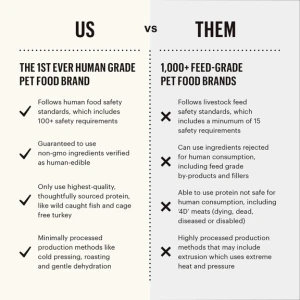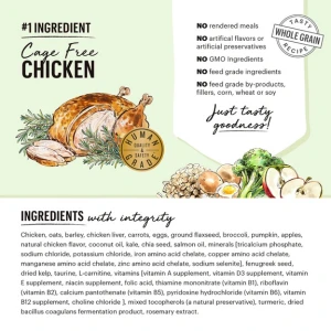 We believe that human grade, minimally processed whole foods provide pets the best nutrition possible. Created with a veterinary nutritionist, these 100% human grade clusters are made with real whole foods you’d recognize from your own kitchen, like cage free chicken. They’re MadeHonest™ with human grade, nutrient-rich ingredients, cold-pressed into bite sized clusters, roasted and dehydrated to maintain the nutrients, aroma and taste of whole foods. Our Whole Grain Chicken & Oat Whole Food Clusters give you the same scoop & serve convenience as other dry dog foods, while giving your pup minimally processed, 100% human grade taste and nutrition.