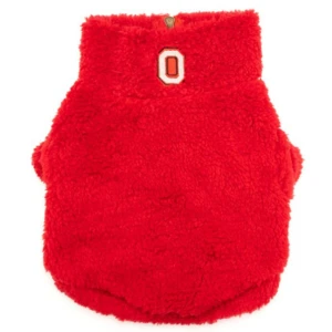 The Worthy Dog OSU Block O Quarter Zip Pullover Wubby Fleece Dog Jacket Red