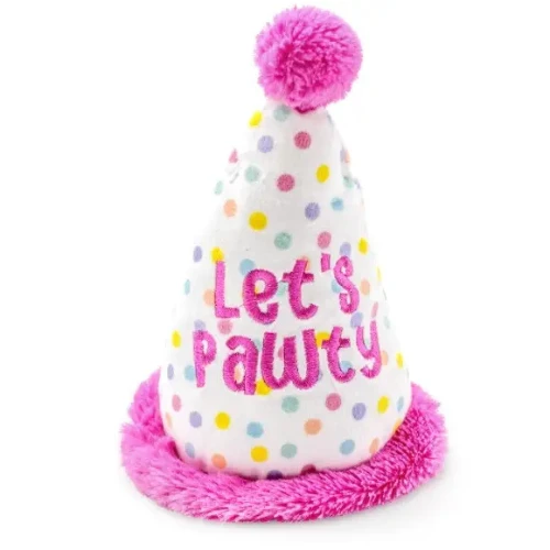 Top off your pup’s birthday celebration with the ThoozyPet Birthday Hat Plush Dog Toy This charming 7” toy brings the party to your furry friend with its festive blue or pink hat design. Perfect for small to medium breeds, this plush party hat is more than just a cute accessory – it’s a fun-filled toy that will keep your dog entertained long after the birthday candles are blown out. The built-in squeaker provides an exciting sound that will have your pup coming back for more fun. Durably constructed to withstand enthusiastic play yet soft enough for cuddles this birthday hat toy is versatile enough for any play style. Whether it’s a game of birthday fetch, an iconic photo shoot or just a cozy companion for opening presents, this toy is sure to make your dog feel extra special on their big day. Made from pet-safe materials you can relax and enjoy the celebration knowing your furry friend is playing safely. Let the party begin!