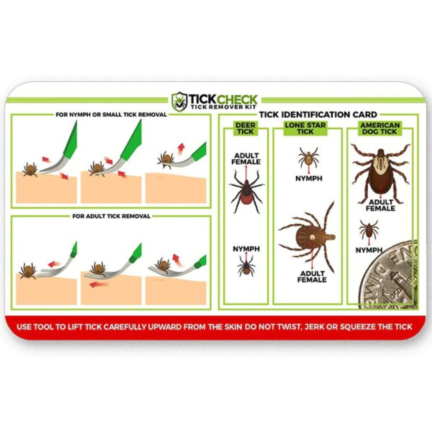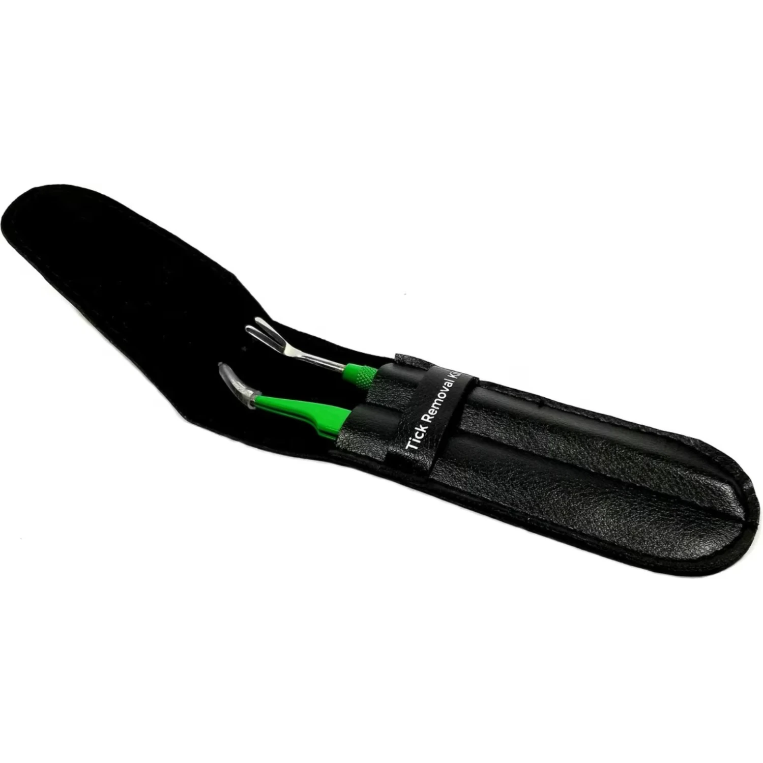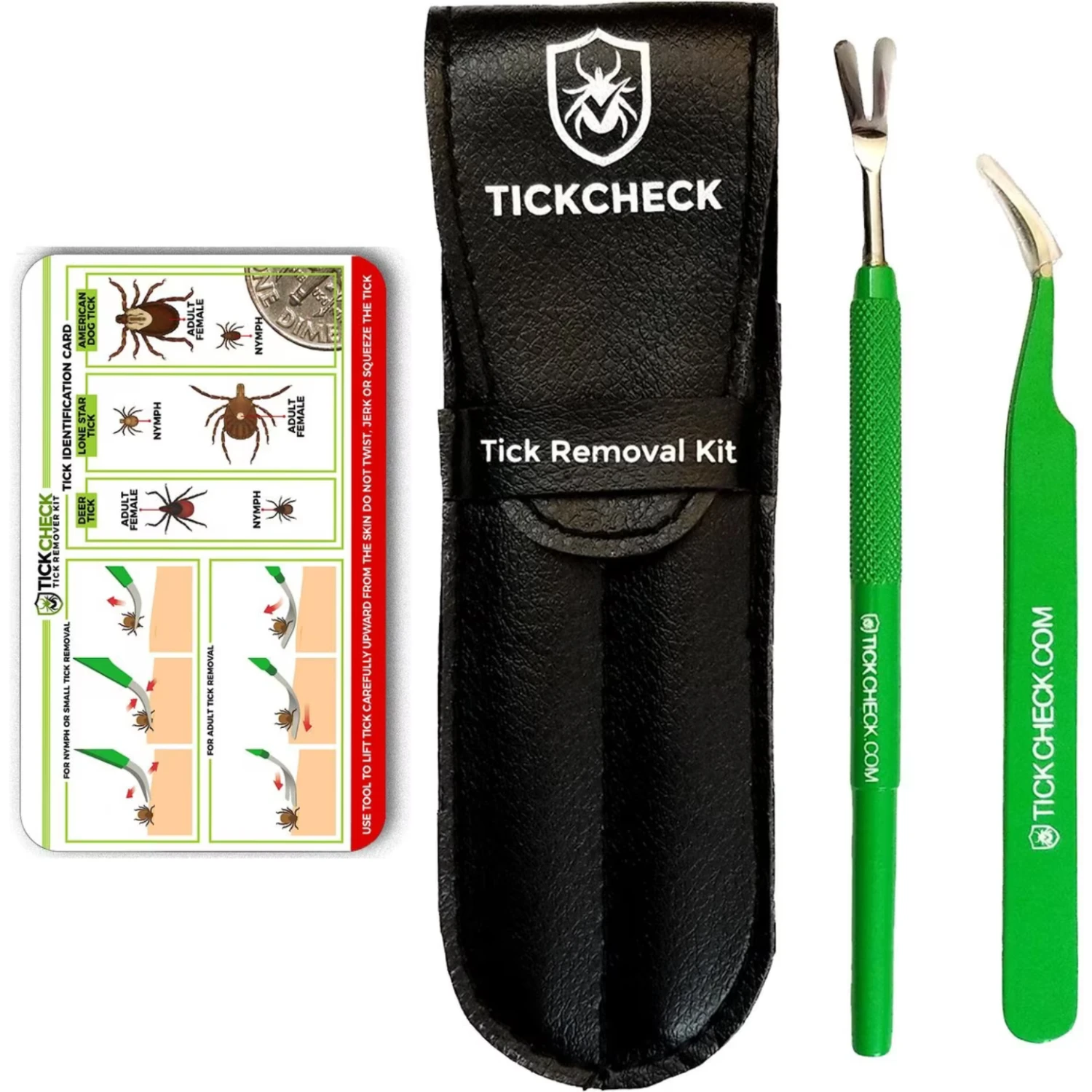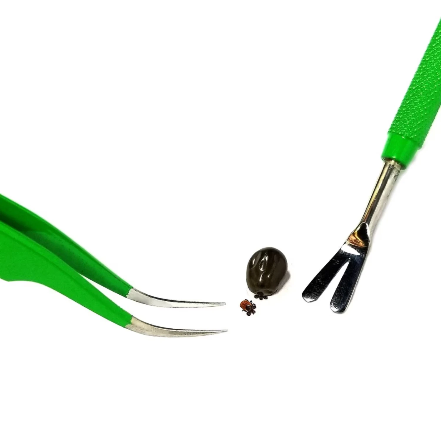 - Kit includes a leatherette pouch, a stainless-steel tick removal fork, and a super-fine-tip tweezer for removing nymphs and small deer ticks.
