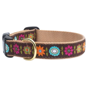 Up Country’s ribbon collars, leads and harnesses come in a wide variety of lengths, and in three widths. Wide = 1 inch, Narrow = 5/8 inch, Teacup = 1/2 inch. Ribbon collars are made from high-tensile strength nylon webbing with sewn on polyester/nylon ribbons. Our ribbons are stain and fray resistant; designed to last a lifetime. All collar and lead hardware is cast, not welded brass for extra strength. Our buckles are Coast Guard approved for high weight hold. Machine wash cold, air dry